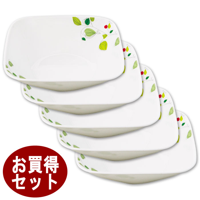 ボウル 17cm コレール CORELLE スクエア 白 食器 皿 角皿 グリーンブリーズ 同柄5個セット ( 送料無料 食洗機対応 ホワイト 電子レンジ対応 お皿 オーブン対応 白い 白い皿 深皿 中皿 中鉢 盛り皿 器 角型 スクエア リーフ 洋食器 )