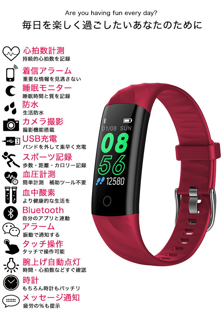 【即納】 スマートウォッチ 活動量計 心拍計 血圧測定 歩数計 USB充電 スマートブレスレット 防水 着信 LINE SMS通知 消費カロリー 睡眠検測 スポーツ iphone & Android フィットネスリストバンド 健康サポート機器 ウェアラブル ウォッチ 敬老の日