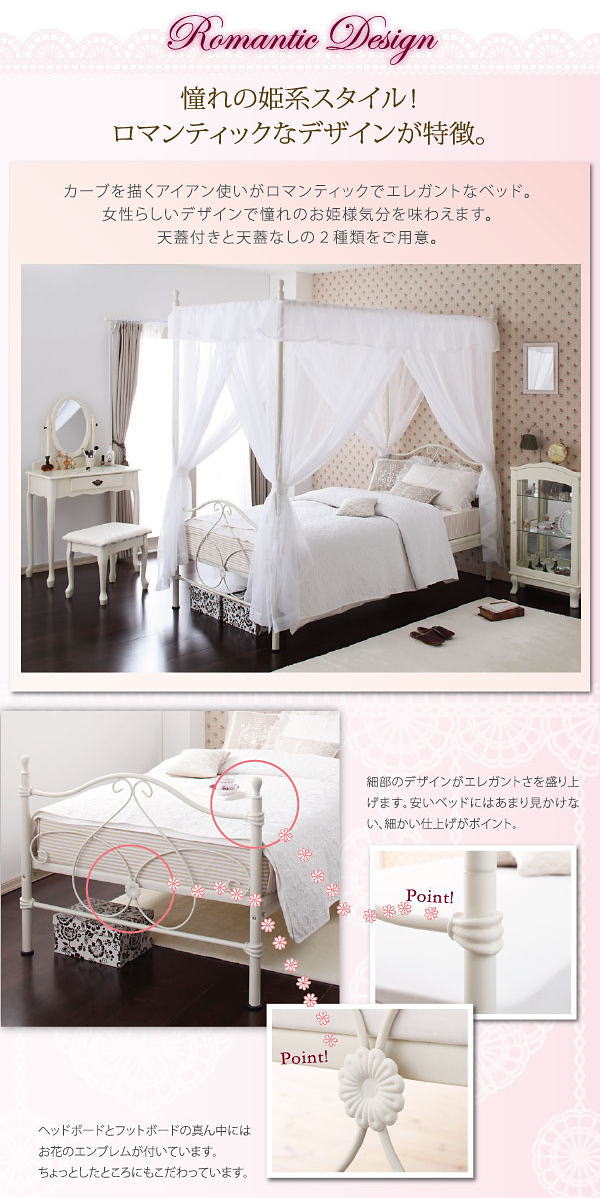ベッド Celestia(セレスティア) 天蓋のみ シングル 姫系 かわいいベッドシンデレラベッド ベッド パイプベット シングルベッド プリンセス TG-906S