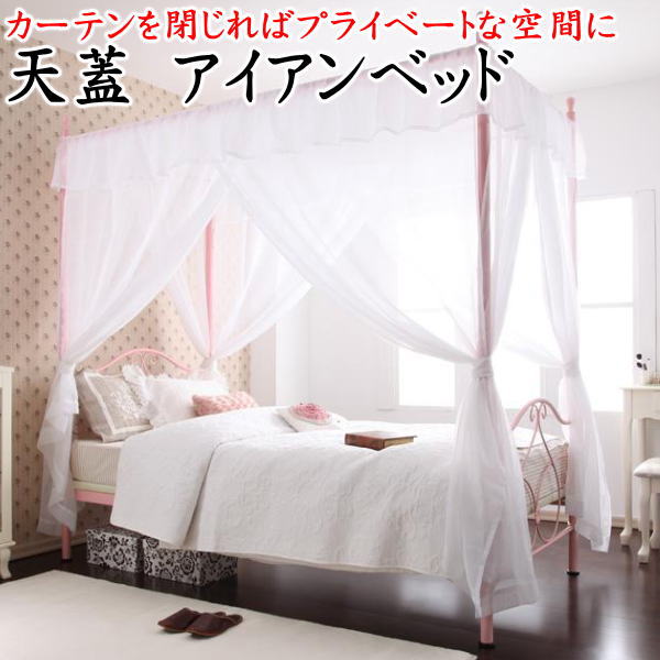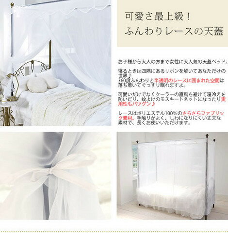 天蓋 ベッド 天蓋付きベッド シングル ベッドフレーム 姫系ベッド レースカーテン付 スチール プリンセスベッド エレガント パイプベッド アイアンベッド お姫様ベッド