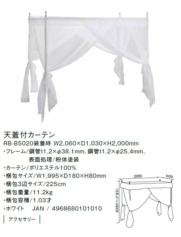 高梨産業 天蓋付カーテン(ホワイト) RB-F30G-WH