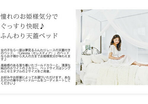 天蓋+セミダブルベッド+マットレスセミダブル Celestia 奥行206cm ゴールドorホワイト
