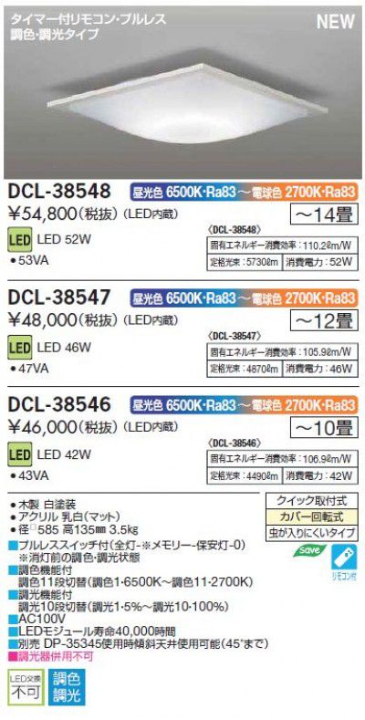 DCL-38554 LED シーリングライト 14畳 タイマー付リモコン 大光電機 DAIKO 調光 調色 機能付【代引き不可】