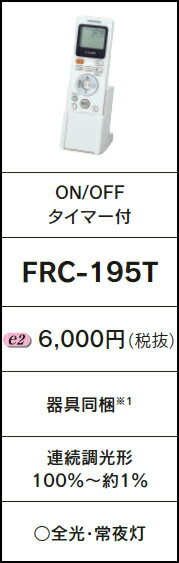FRC-195T 東芝ライテック LEDシーリングライト 角形フラット/間接光付14畳タイプ用リモコン オプションメーカー希望小売価格はメーカーカタログに基づいて掲載しています。